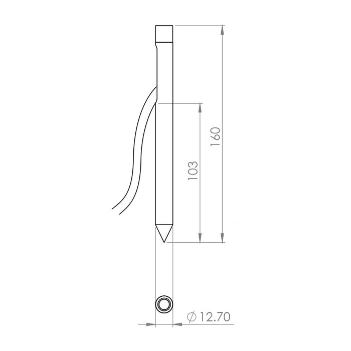 The LuxR Micro Spot is a miniature low-voltage dimmable outdoor spot light, with a 100mm spike for installing into soil.