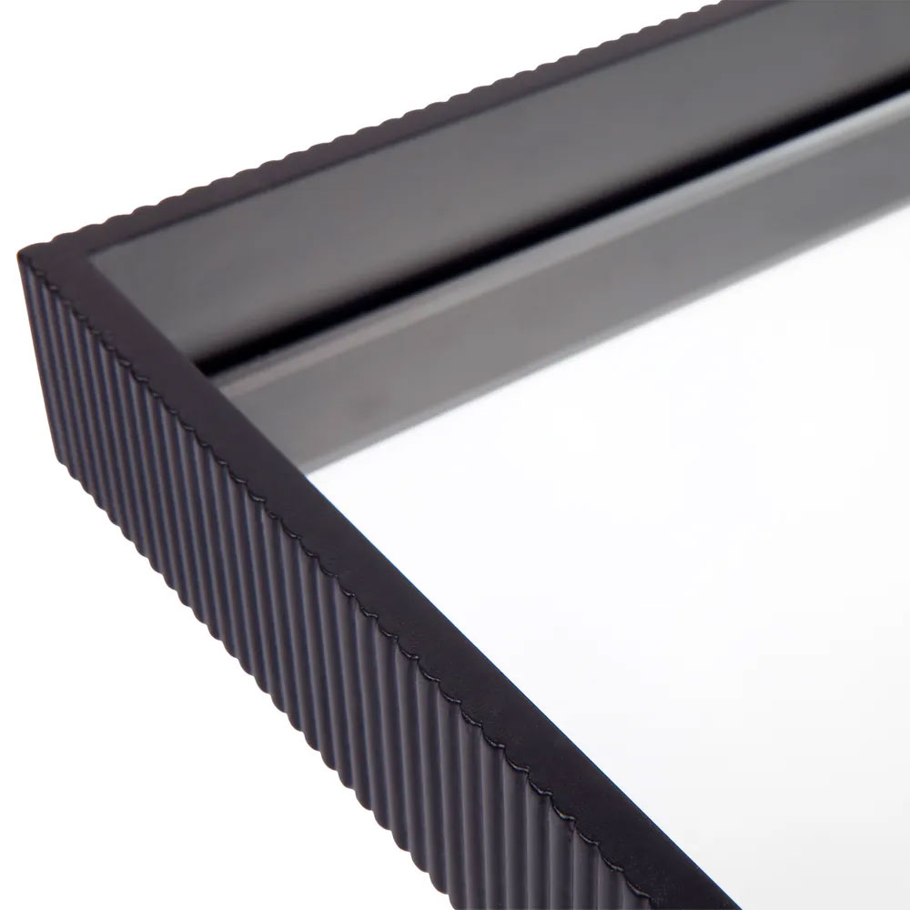 Available in a range of sizes, Miles features a bevelled mirrored base surrounded by a chic black satin frame with ribbed detailing - making for a sophisticated statement.