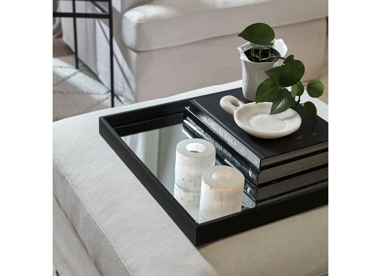 A striking addition to any bedroom, entry or living room scene, the Miles mirrored tray in black offers a fresh, uncomplicated, modern aesthetic.