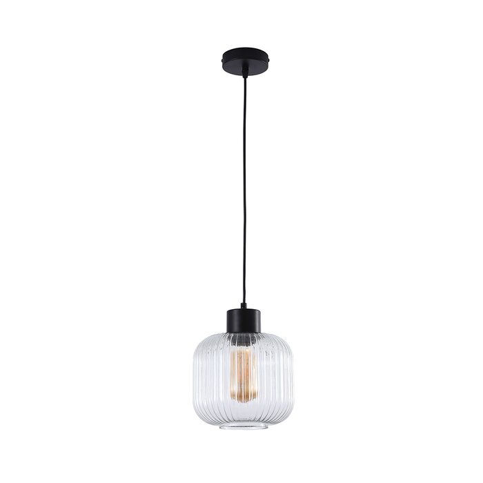 The MILLER seties of pendants feature an optic ribbed clear glass on a black suspension. When used with a clear filament bulb, the handmade optic glass lights up beautifully. Hang one as a single pendant or a line of three or four over a bench.