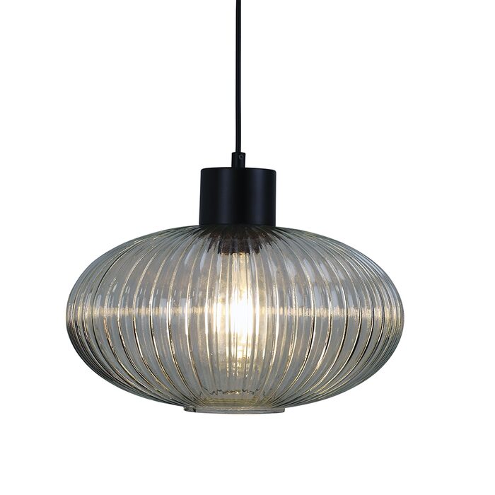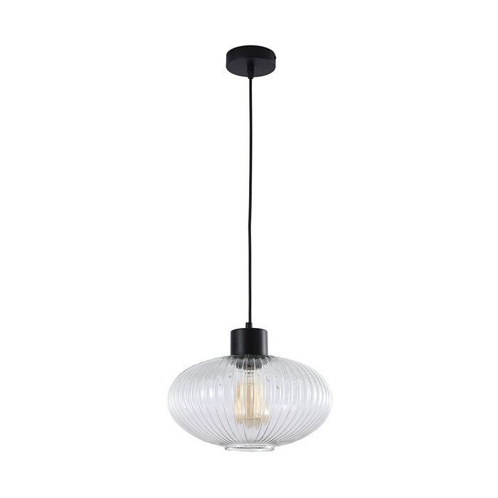 The MILLER seties of pendants feature an optic ribbed clear glass on a black suspension. When used with a clear filament bulb, the handmade optic glass lights up beautifully. Hang one as a single pendant or a line of three or four over a bench.