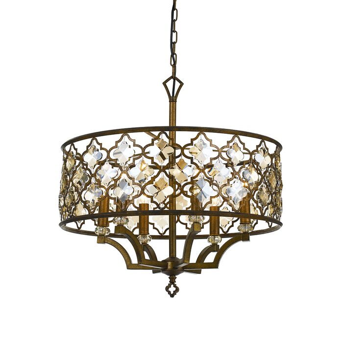 A stylish 6 light indoor ceiling pendant perfect for any room. The Mimosa modern pendant by Telbix Australia will complement your room without competing with it. Aged Brass finish aluminium frame with crystal beads.