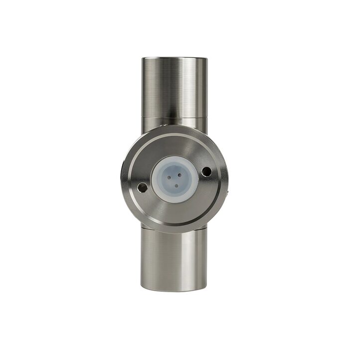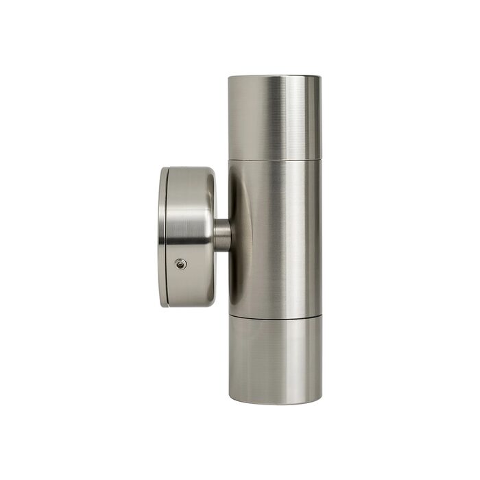 A compact, durable outdoor light made from marine-grade stainless steel, designed to cast light both upwards and downwards.