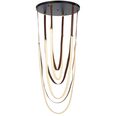 Its graceful strands of vegan leather, suspended from a sleek iron canopy, drape down with effortless sophistication, creating a stunning visual flow.