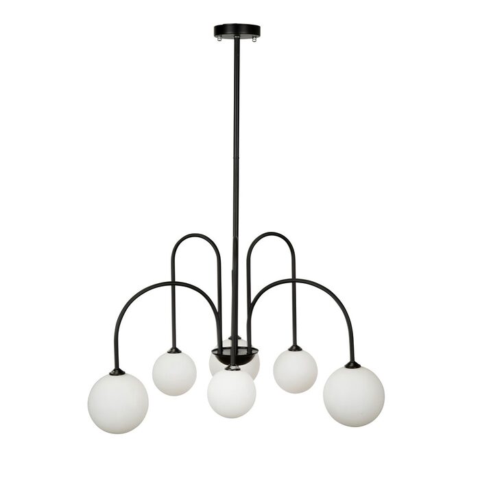 Five curved rods, each with their own glass sphere give a starburst effect giving the fixture a unique character.