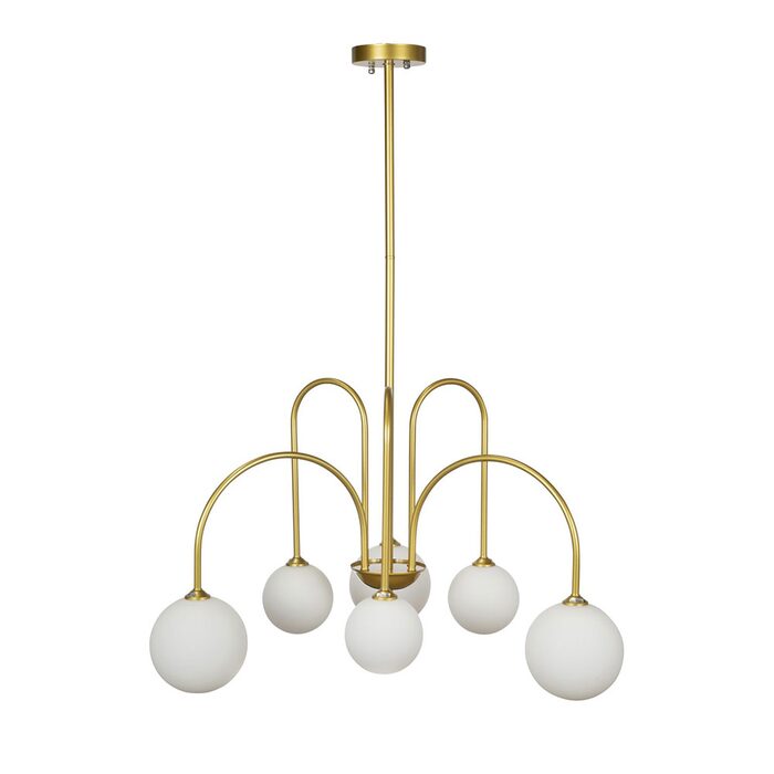 Five curved rods, each with their own glass sphere give a starburst effect giving the fixture a unique character.