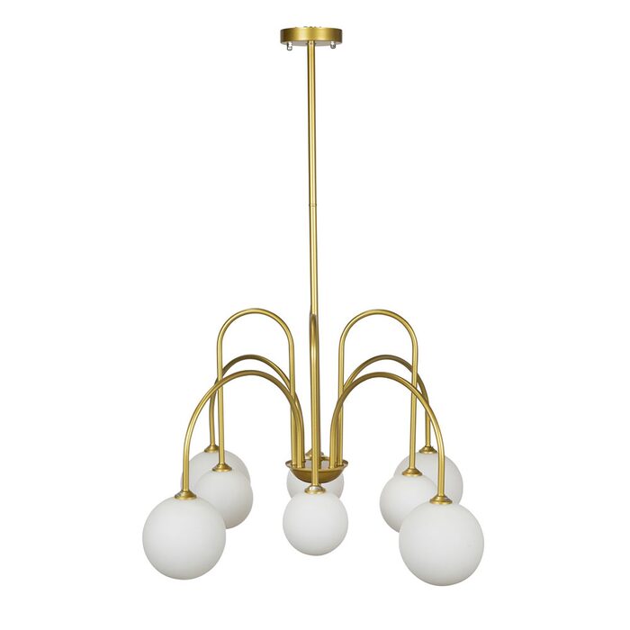 Five curved rods, each with their own glass sphere give a starburst effect giving the fixture a unique character.