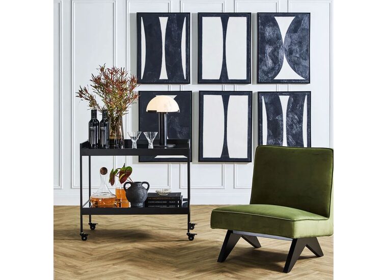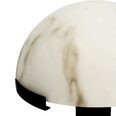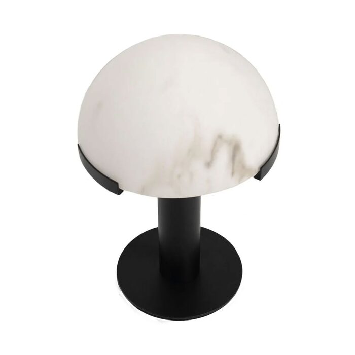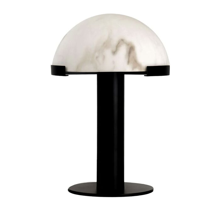 Featuring an off-white resin dome supported by a sleek cylindrical iron base in a modern matte black finish, the Mischa table lamp stands 45cm tall, making it a perfect bedside pairing or as a mesmerising feature atop a buffet or console. Also available in brass.