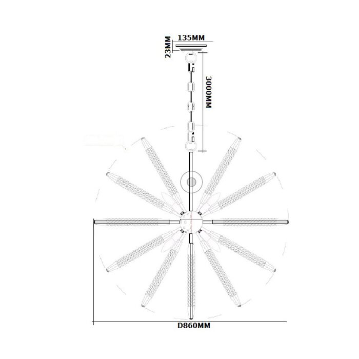- Height: 860mm + 3000mm cable
