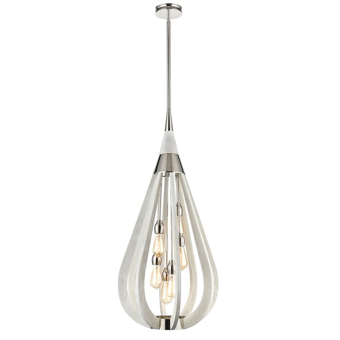 Polished nickel and Winter Moss finished wood pendant light in three different size. Great for use in homes or restaurants.