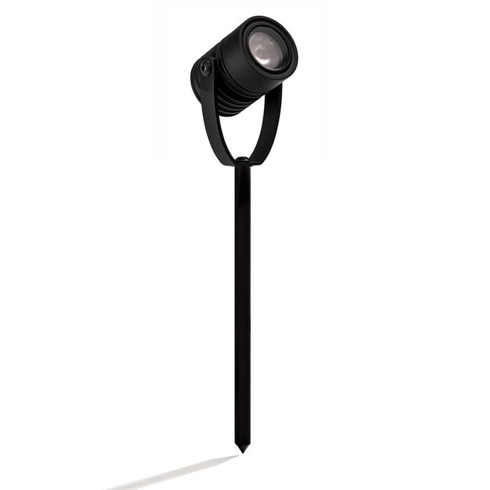 The M1 Spike Spot is a very small low-voltage dimmable outdoor spot light with a solid metal spike for installing into garden soil.