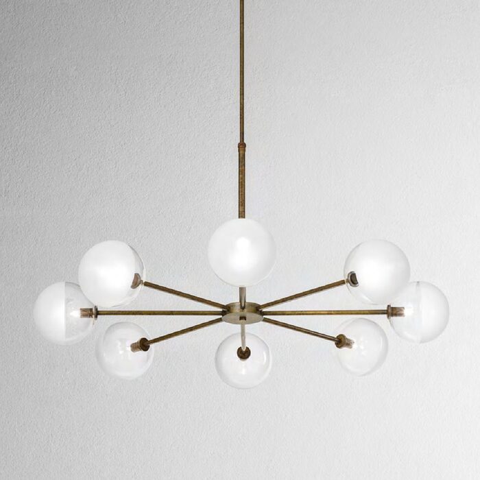 Having a maximum drop of 102cm and H15 x Ø99.4cm dimensions, it is available in a pre-aged brass or natural brass finish.