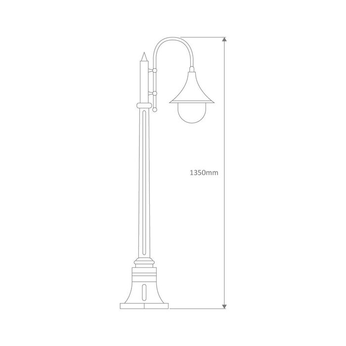 Monaco 1 light die-cast aluminium and moulded acrylic lens single head 1.35m post light. Made in Italy, assembled and powder coated in Australia.