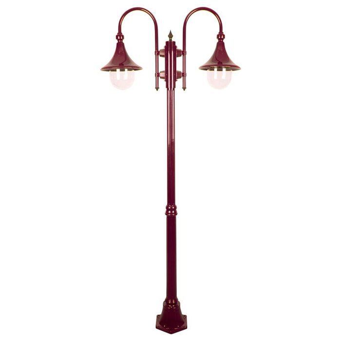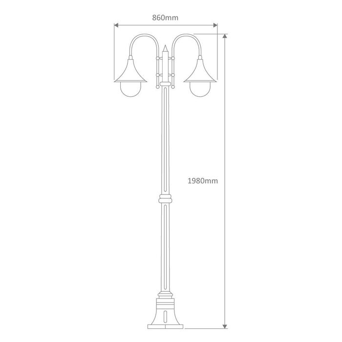 Monaco 2 light die-cast aluminium and moulded acrylic lens twin head 1.98m post light. Made in Italy, assembled and powder coated in Australia.
