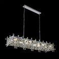 Clear and translucent crystal strands fold in circle, decorated with a series of chrome leaves, diffusing the illumination in sparkling way, creating an elegant and graceful ambience in any space.