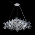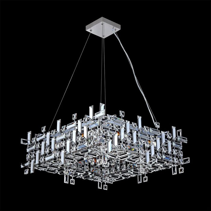This chandelier features square framework trimmed with numerous clear crystal pendants, that providing a particular counterpoint to the classic design.