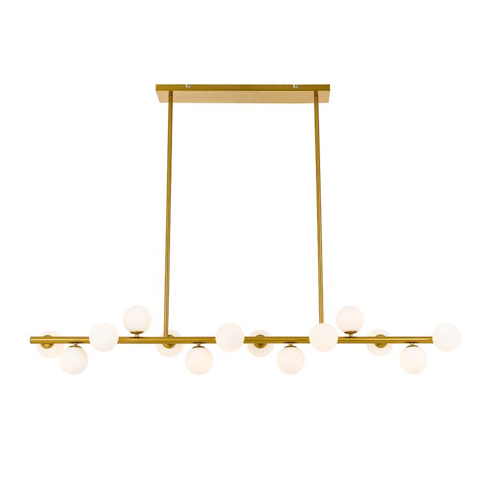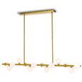 This linear suspension is simple and striking, with just right mix of mouth blown glass globes positioned around the central body.