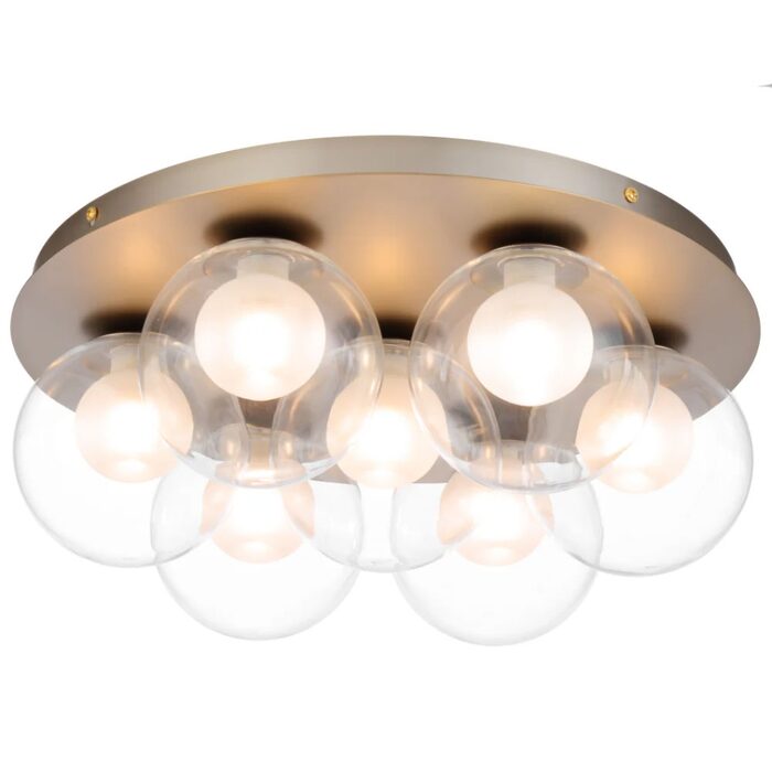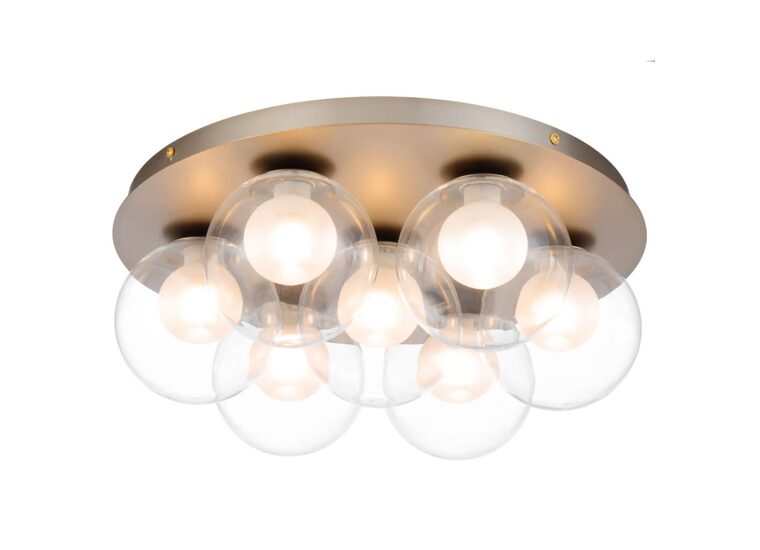 The collection includes a table lamp, wall light, and two close‑to‑ceiling (CTC) fixtures—a 3‑light and a 7‑light—ideal for lower ceilings or rooms needing a streamlined profile.