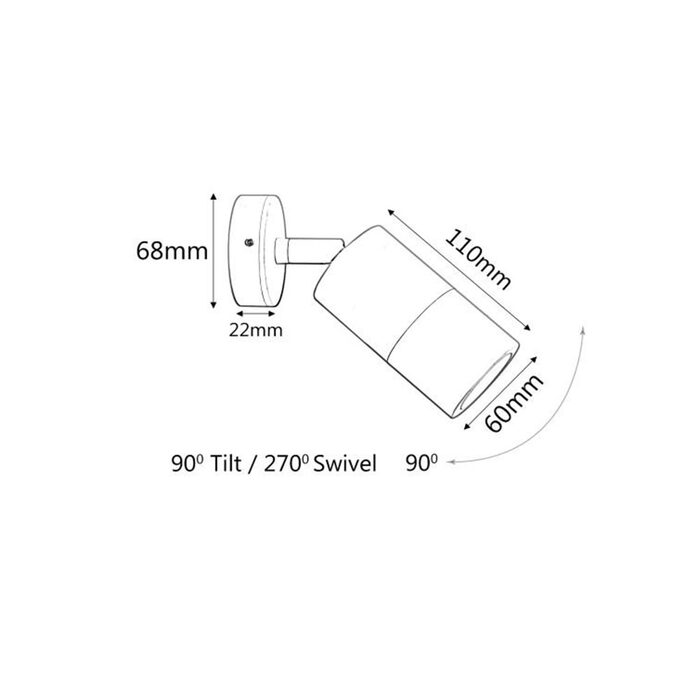 - Max Wattage: 1 x 8W LED OR 1 x 35W Halogen
