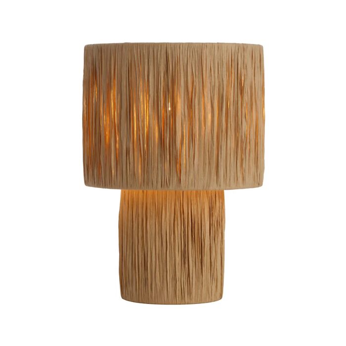 Delicate Nativa is intricately wrapped from head to toe with the highly sustainable and eco-friendly Raffia, around a sleek, timeless silhouette, giving an airy bohemian feel to this unique table lamp, perfect atop a nightstand or desk.