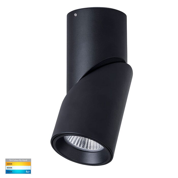 The Havit HV5823T-BLK Nella is a 12W, surface-mounted, rotatable LED downlight in a black, powder-coated aluminium finish, offering 36°–60° beam angles, Tri-Colour (3000K/4000K/5500K) functionality, and IP54 weather resistance.