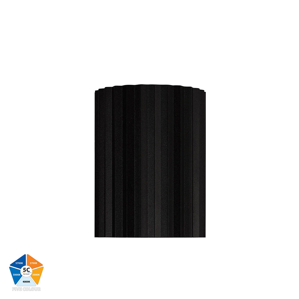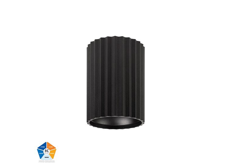 The Havit HV5851S-BLK-12V is a "Nella" series, surface-mounted LED downlight, featuring a black powder-coated aluminium finish and an IP65 rating suitable for indoor or outdoor (coastal) use.