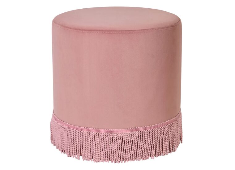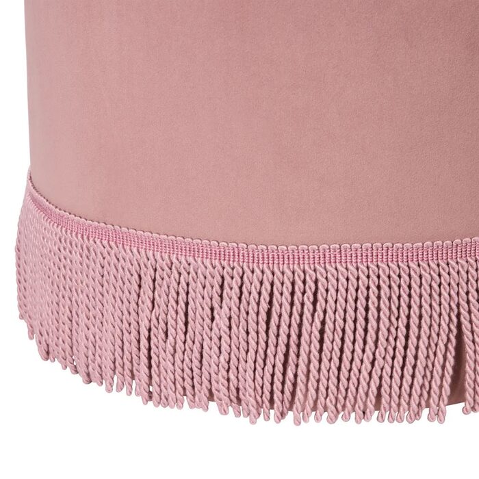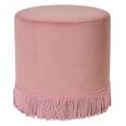 Introduce a touch of elegance to your space with this round velvet fringe ottoman, available in soft pink, ivory, and duck egg blue velvet.