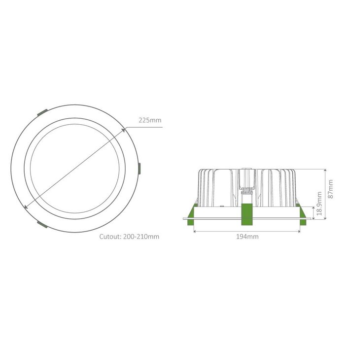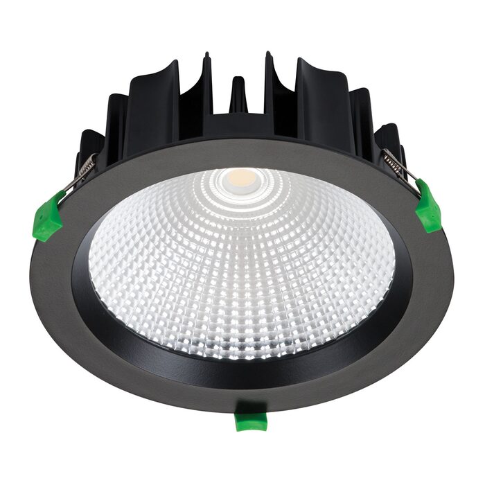 The reflector behaves in much the same way as a metal halide fixture does with the favourable scallop style illumination. Added benefits of an IP44 rating and fully mains dimmable LED driver makes this a perfect alternative to metal halide and PLC styled down lights. Applications include schools, shopping centres, retail shops etc.