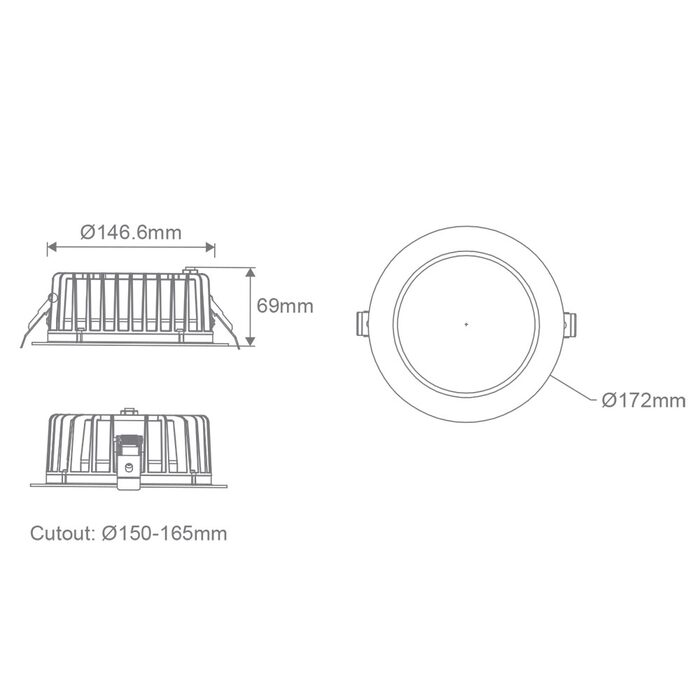 - Cutout: 150mm - 165mm