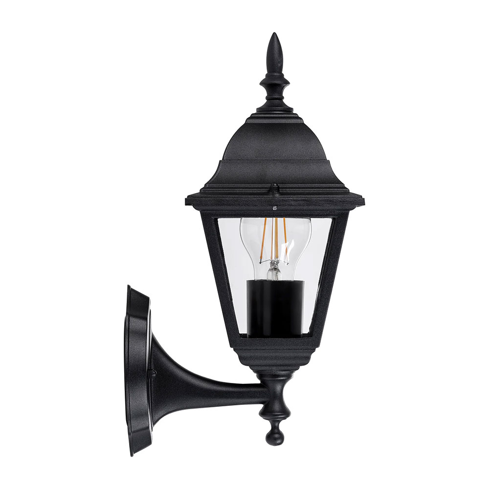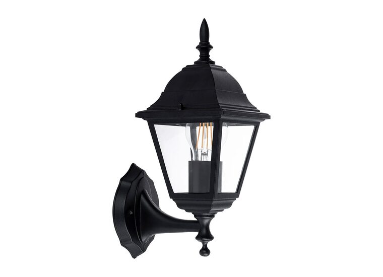 The Havit HV3551W-BLK is a "Newark" style four-panel coach wall light, designed for outdoor use.
