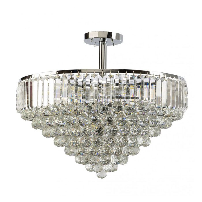 Close To Ceiling Crystal chandeliers are still attracting attention today. Sparkle and shimmer created by crystals and ornate details give glamour and will make the strongest impact while providing the best function.