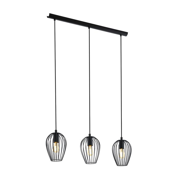 This Newtown Black Cage Pendant Light is fitted with 3 x E27 lamp holder which looks fantastic with LED and carbon filament globes .