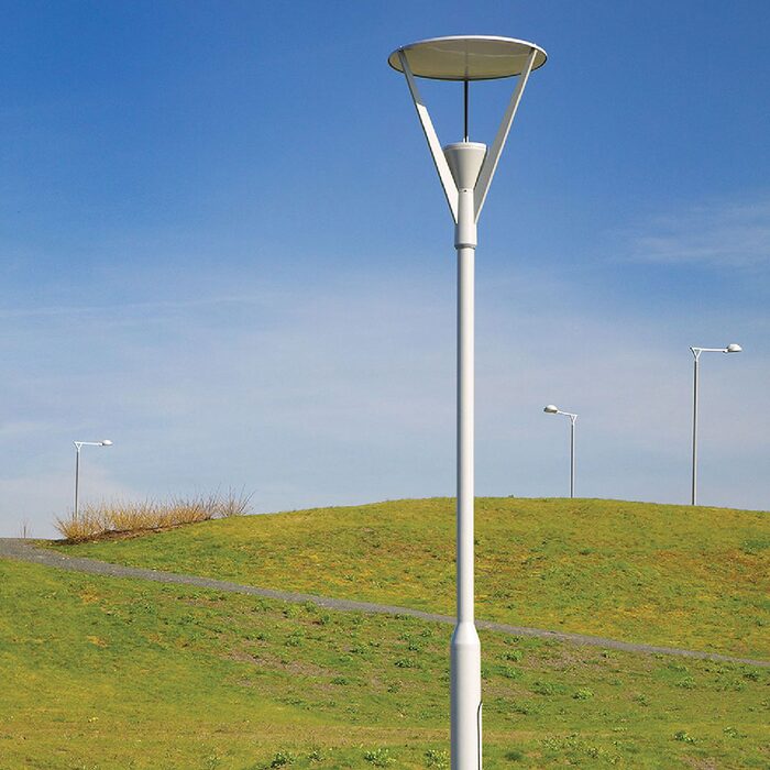 The modern pole luminaire is designed to illuminate squares, streets and parks. Durability and a modern ascetic design combine with a pleasant evenly diffused light beam.