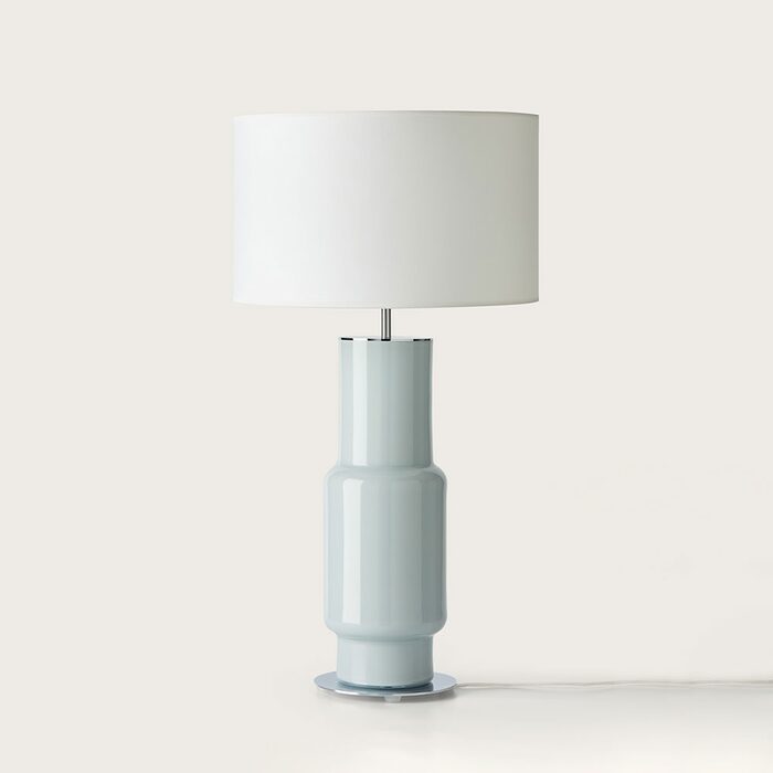 The ceramic base is in Mexico blue, but it is customizable with other colors with no additional costs, shade also available in black.