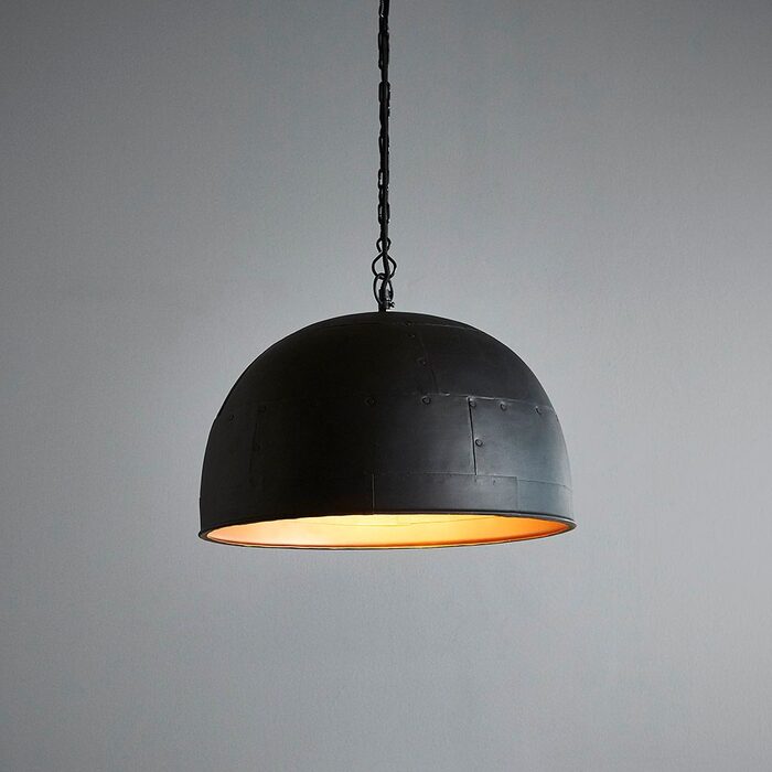 A mid-sized riveted dome with a matte black exterior and a warm gold interior.