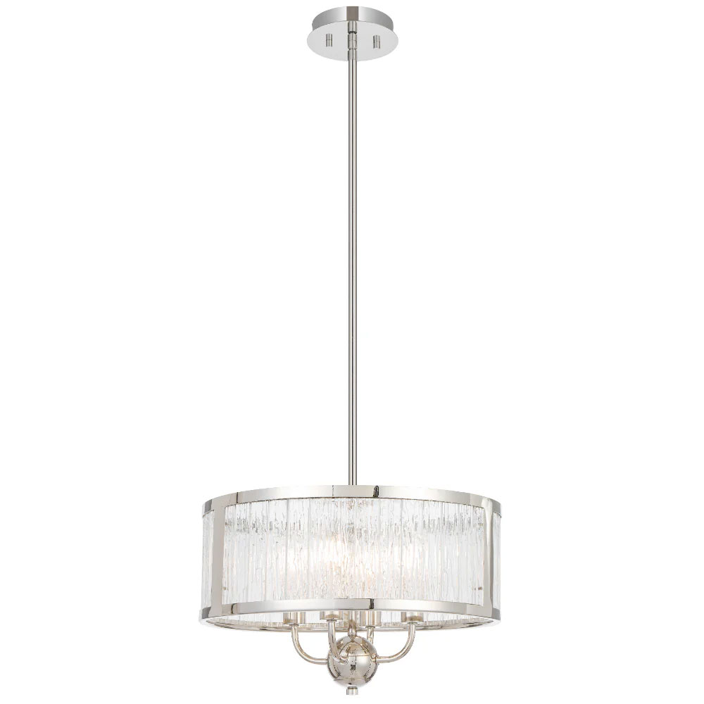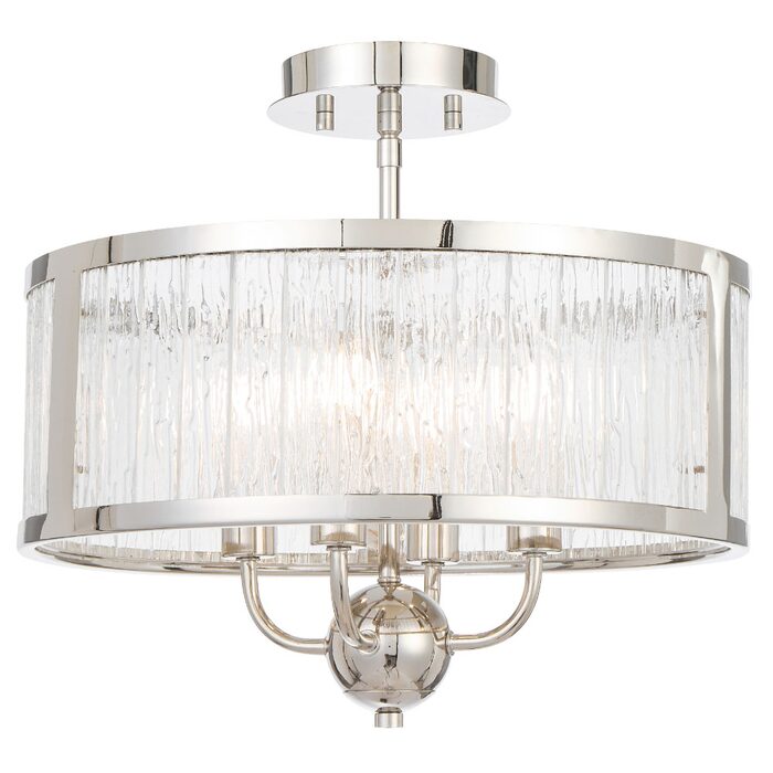 Its standout feature is the textured glass, designed with a rippled, artisanal quality that softly diffuses light while adding visual depth and sophistication.