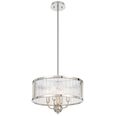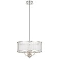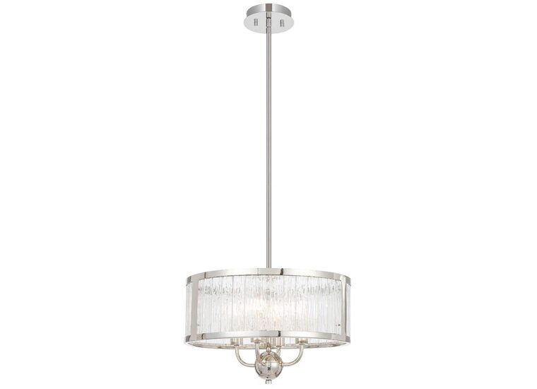 The Norel pendant combines modern structure with subtly glamorous detailing, featuring a drum-shaped frame available in two sizes and three finishes—antique gold, black, and polished nickel.