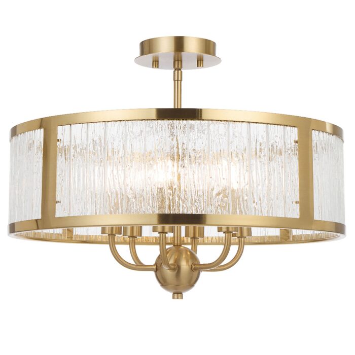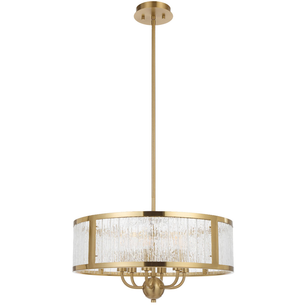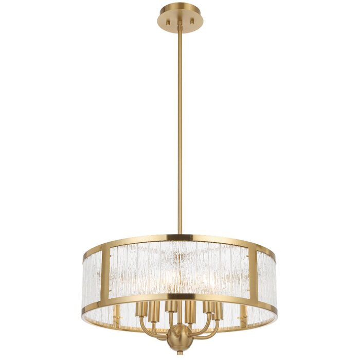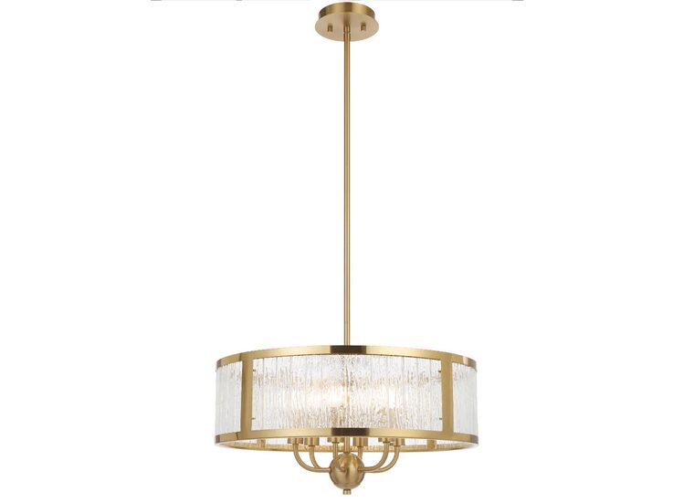 Its standout feature is the textured glass, designed with a rippled, artisanal quality that softly diffuses light while adding visual depth and sophistication.