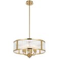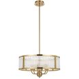 The Norel pendant combines modern structure with subtly glamorous detailing, featuring a drum-shaped frame available in two sizes and three finishes—antique gold, black, and polished nickel.