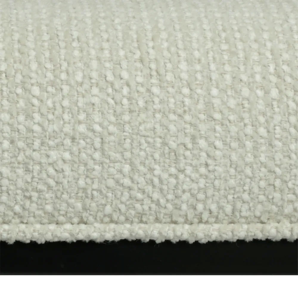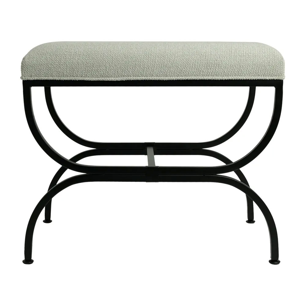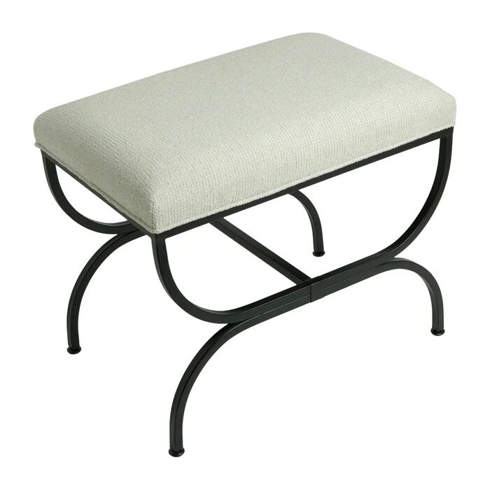 Featuring a gently arched matte black metal base, it is topped with a generously cushioned seat in either speckle ecru or butterscotch chenille.