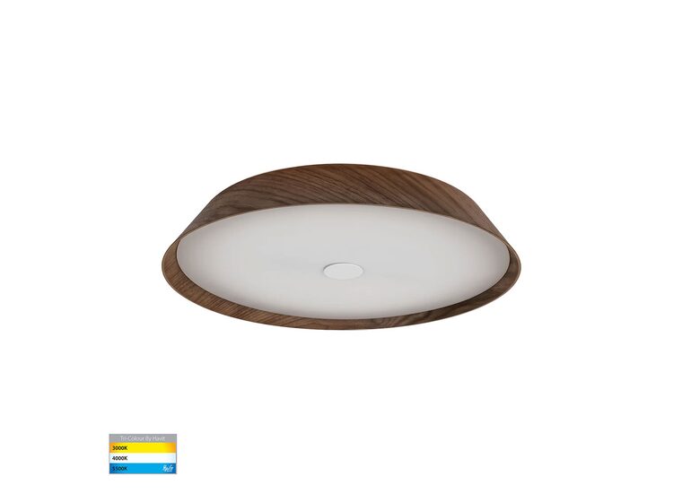 The Havit HV5873T Noyer is a 510mm diameter, ceiling-mounted LED oyster light featuring a natural walnut timber frame and a frosted glass diffuser, designed for modern indoor spaces.