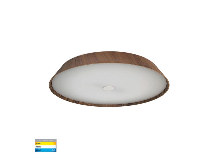 The Havit HV5874T Noyer is a 610mm, 50W walnut timber LED oyster light featuring a contemporary, low-profile design with a frosted glass cover.