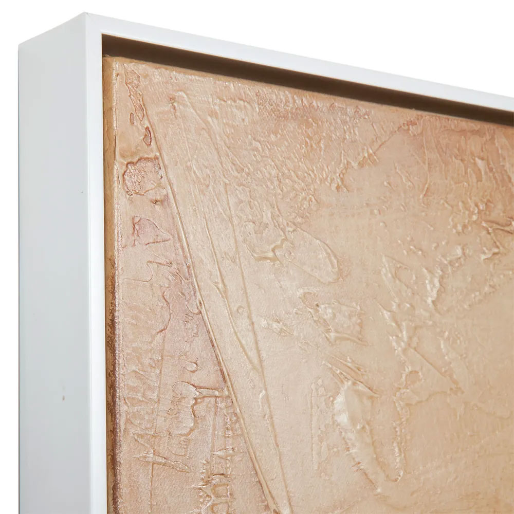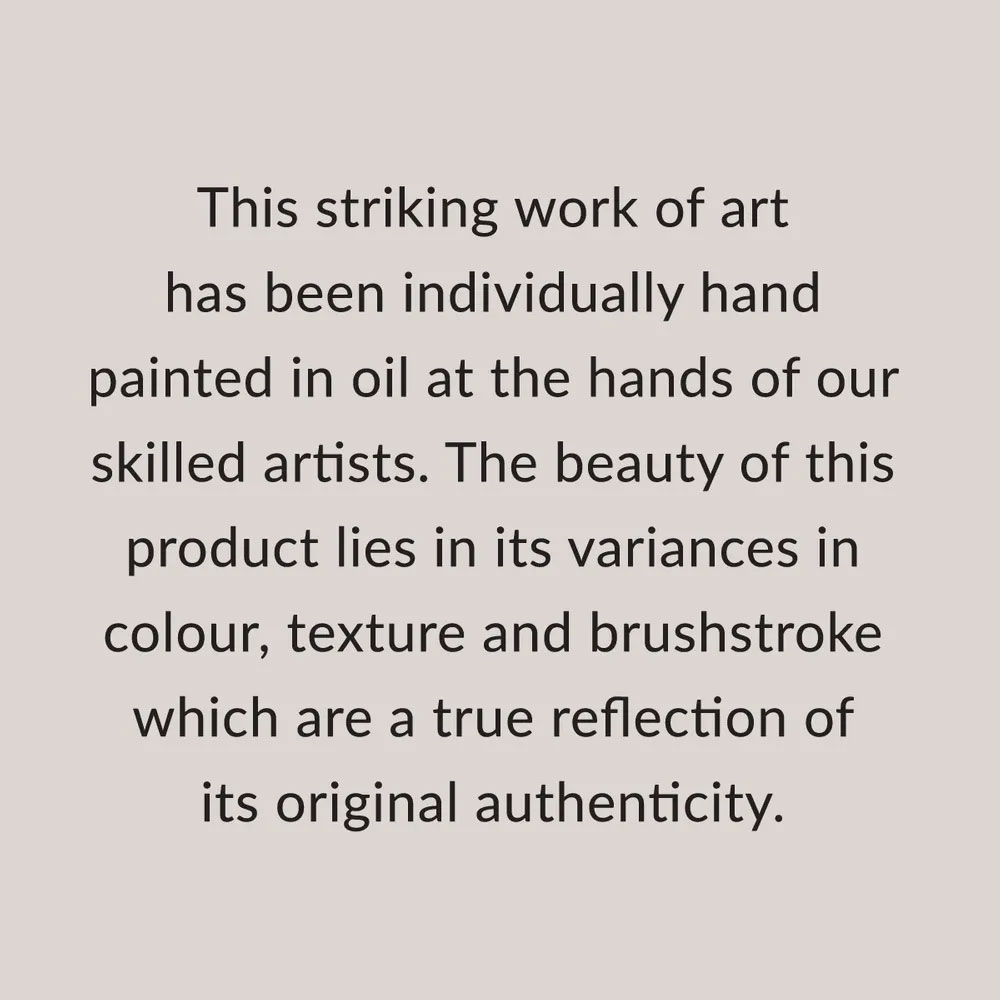 Encased in a matt white shadow box frame, each piece is individually hand painted on linen canvas. Also available in a medium 90 x 110cm size.