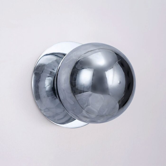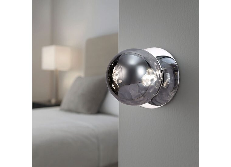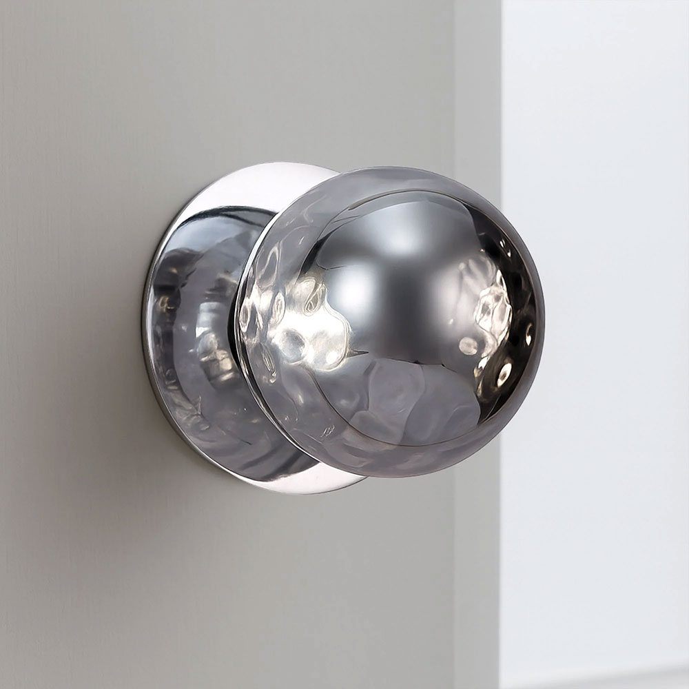 Each wall light pairs a sleek integrated LED module with your choice of round decorative base plate in Gold, Brass, Chrome, Matte White, or Matte Black, and a round glass shade available in Clear, Smoky, Marble Opal, or Frosted Opal, in 10 cm or 15 cm sizes.