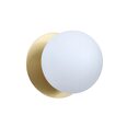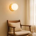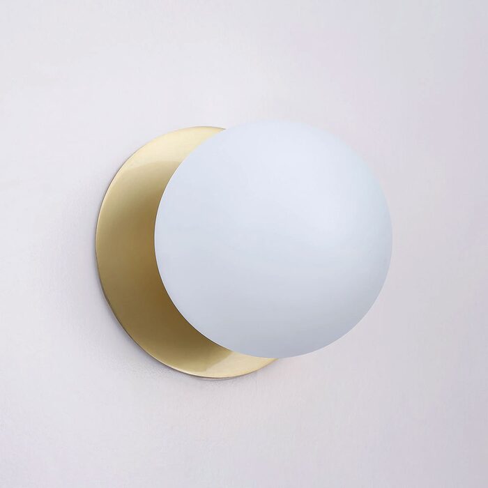 Each wall light pairs a sleek integrated LED module with your choice of round decorative base plate in Gold, Brass, Chrome, Matte White, or Matte Black, and a round glass shade available in Clear, Smoky, Marble Opal, or Frosted Opal, in 10 cm or 15 cm sizes.
