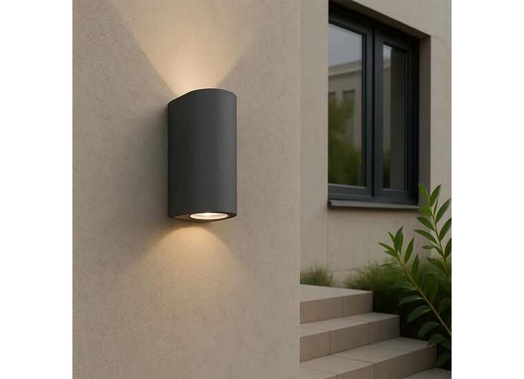 Elevate your indoor and outdoor ambiance with the Olaris 2-Light Up/Down Wall Light, featuring stunning dual ambient illumination that simultaneously projects light upward and downward to enhance wall textures, accentuate architectural details, and create captivating visual effects.