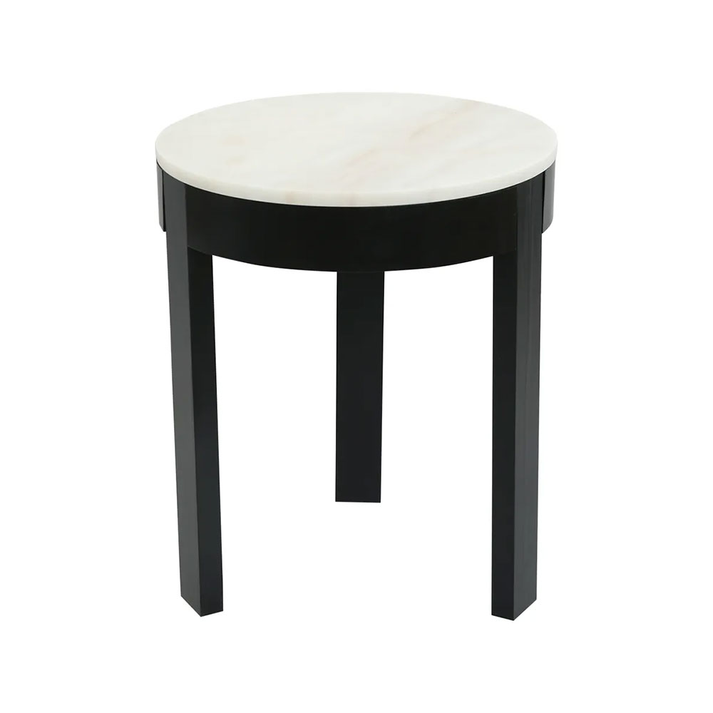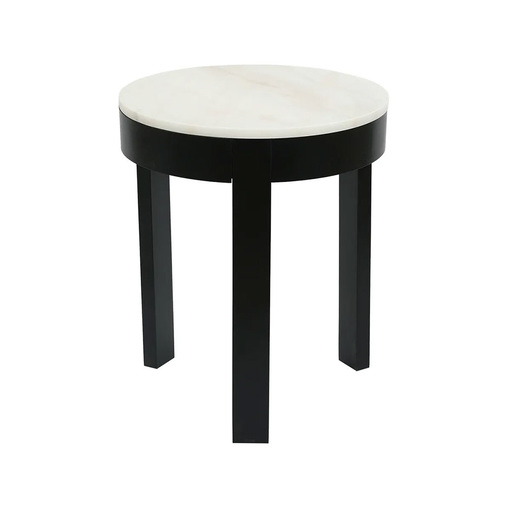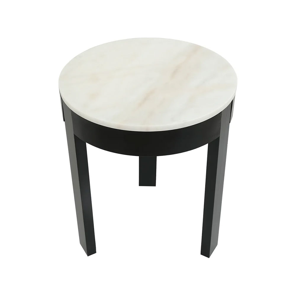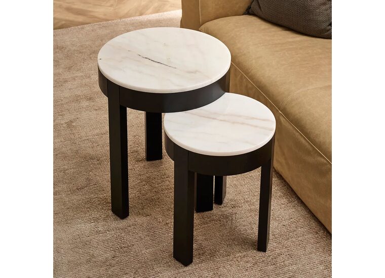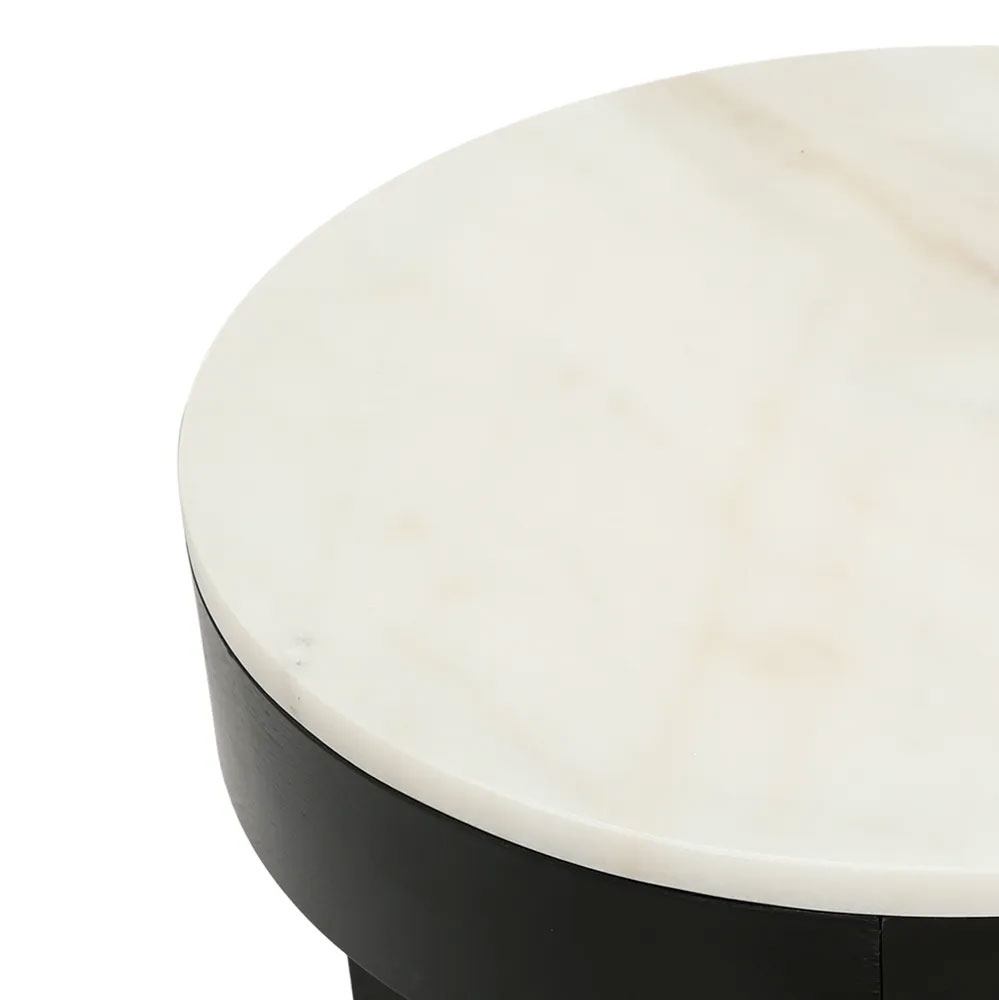 Elevate your interior with our Oliver round black side table featuring a white marble top.