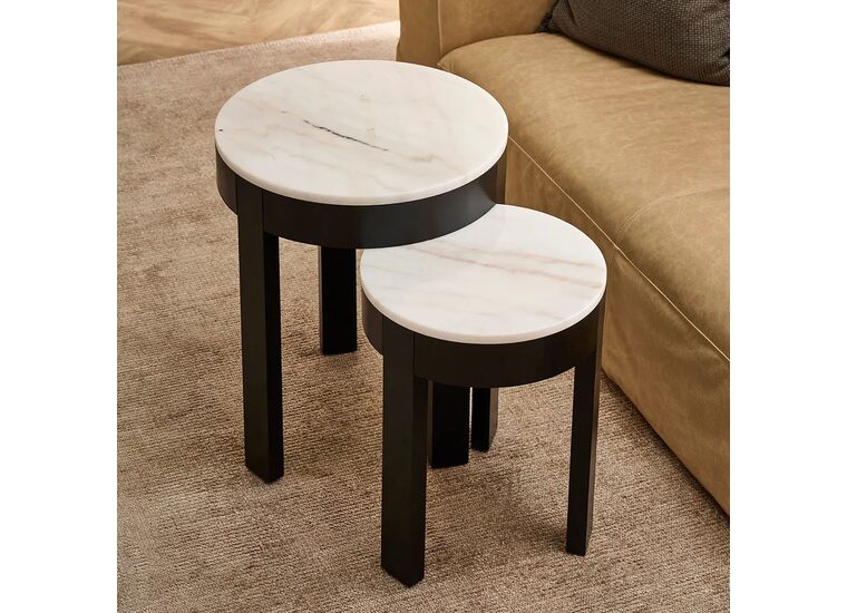 The stylish Oliver Marble round black side table with a white marble top brings a modern yet timeless touch to your space.