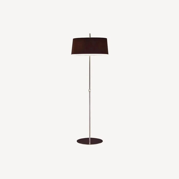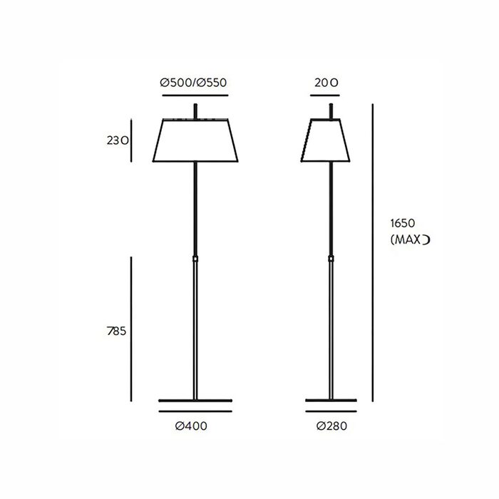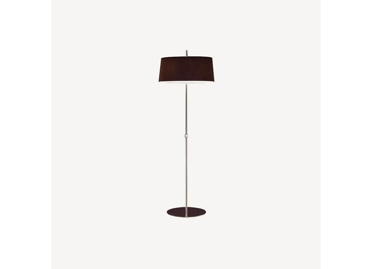Ona is a classic floor light made of a nickel telescopic stem to adjust the heigh and white or black fabric classic rounded lampshade.