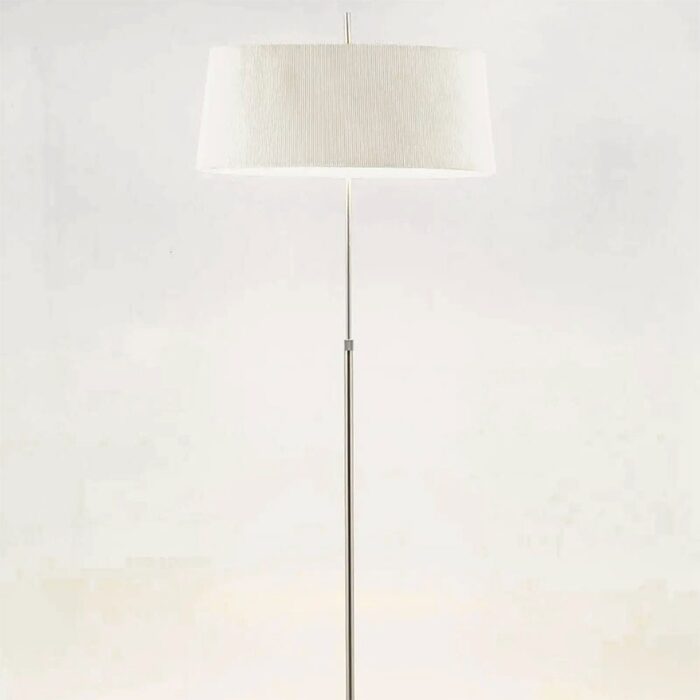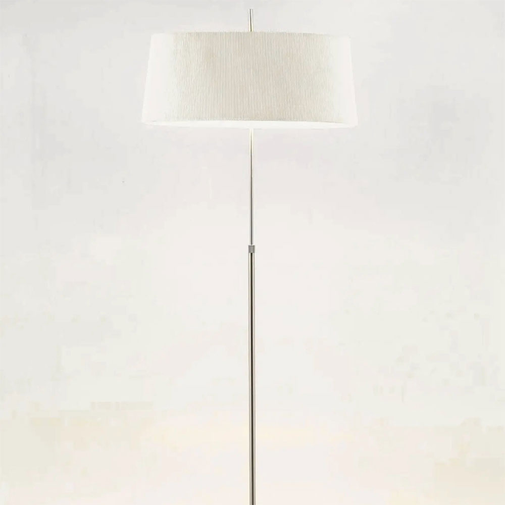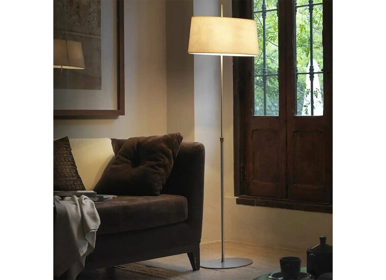 Ona is a classic floor light made of a nickel telescopic stem to adjust the heigh and white or black fabric classic rounded lampshade.